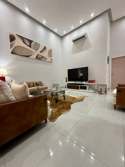 Imóvel moderno; ambientes integrados; marcenaria planejada; cozinha completa; sala com painel; 03 dormitórios (01 suíte e 01 demi suíte); ar-condicionado nos ambientes; lavabo; banheiro externo; piscina privativa; excelente localização dentro do condomínio.