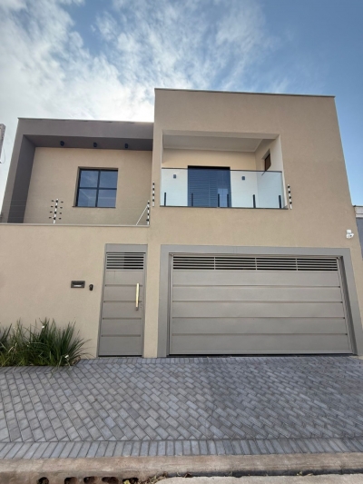 Sendo 3 quartos, sala, cozinha, 1 banheiro, 1 quartinho na frente, garagem para 2 carros.